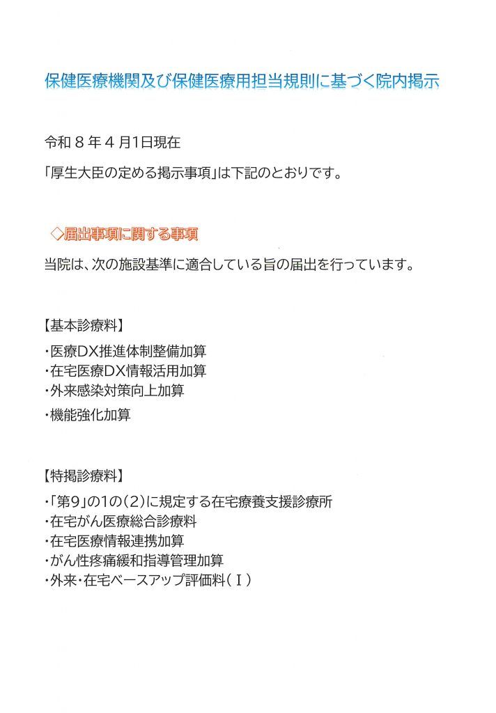 診療報酬改定に伴う院内掲示について