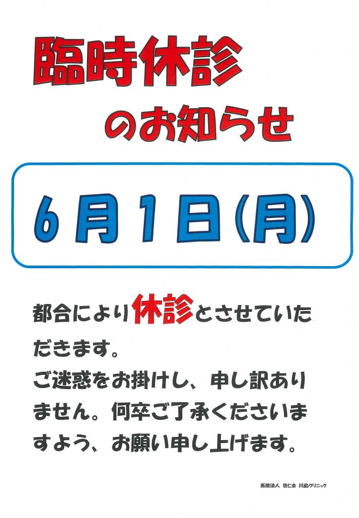 6月臨時休診のお知らせ